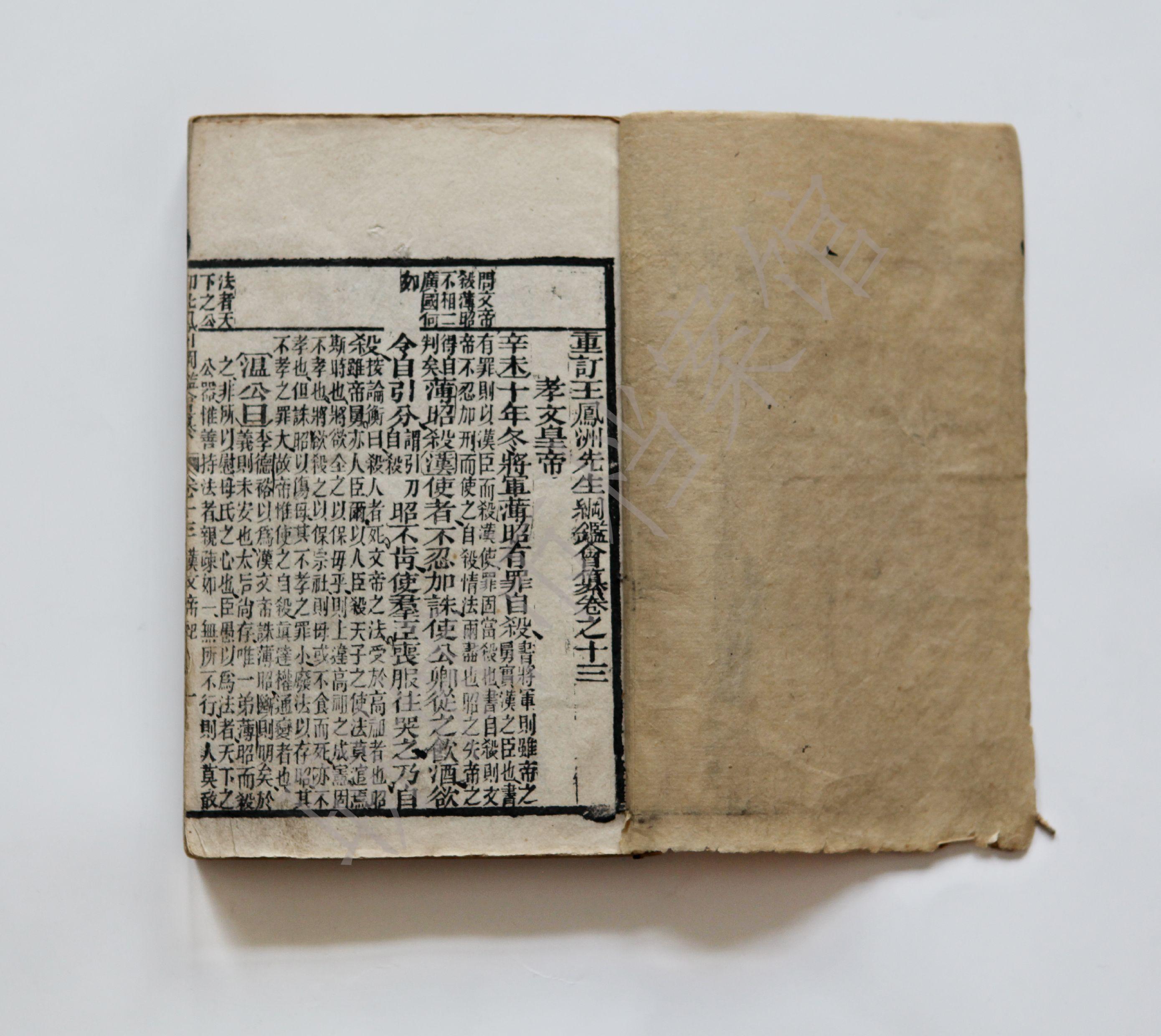 —1590)字符美,号凤洲,汉族,太仓(今江苏太仓)人,明代著名的文学家、史学家,本史书共四十六卷,我馆仅存十六卷(九册),主要是汉、宋纪,其中汉纪7卷,内容涉及汉文帝、汉景帝、汉武帝等17位汉朝皇帝;宋纪9卷,内容涉及宋太祖、宋太宗等8位宋朝皇帝。